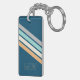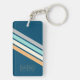 Custom Teal Blue Turquoise Grey Yellow Stripes Art Key Ring