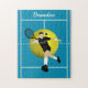 Fun custom tennis jigsaw puzzle featuring a bold blue court, bright yellow ball, and illustrated player in action. Personalise with a name to create a unique gift for tennis lovers, kids, or sports enthusiasts. Great for birthdays, team celebrations, or as a keepsake for players and coaches. Perfect for puzzle fans who enjoy sports-themed challenges, available in multiple sizes and piece counts to suit all ages.