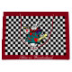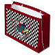 This eye catching customizable text gift bag is Alice in Wonderland themed.  It features the White Rabbit and a classic black & white checkerboard pattern with a deep red background. The White Rabbit image is the original illustration from Lewis Carroll's famous work. The rabbit wears a royal squire top bedecked in hearts and carries a trumpet, scroll, and his pocket watch. There is a spot to customize the bag with your own name or text at the bottom. The default text says Alice in Wonderland in white cursive print. Just hit the Personalize button to edit or delete the text, or the Customize button to change the font, size, font color, or background color if you wish. Makes a great gift or party item for lovers of checked and checkerboard patterns, Alice in Wonderland, the White Rabbit, and quirky, elegant designs. This design is also available on gift tissue paper, plates, napkins, stickers, and other items.
