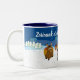 Custom text Basque Olentzero Christmas snow scene: Two-Tone Coffee Mug