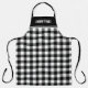 A black and white buffalo plaid kitchen apron featuring the text, “Chow Time!” Great for entertaining and barbecues. Text is customisable if you would like to include alternative text.