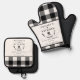 Custom Text, Black and White Buffalo Plaid Oven Mitt & Pot Holder Set