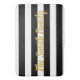 This black and white bath mat has horizontal stripes. Personalise the text on your bath mat in faux gold script.