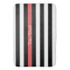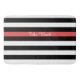 This bath mat has black, white, and red stripes. You personalise the bath mat with your desired text or keep the white script that says 'The Bath'.