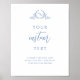 Add a touch of elegance to your wedding decor with this beautiful custom text sign, attractive blue modern calligraphy elements, and a delicate hand-drawn botanical monogram offering a serene, chic, timeless appeal. Whether it’s a welcome sign, cards and gifts, in loving memory, or any other signage display you require, this sign is fully customisable to fit your needs. Choose your own wording, names, or special message to make your big day even more personal. Add your text using the template text boxes. You may edit the design and use the design tool to make changes to its font style, size, colour, and positioning. 10" x 8" is only our default size, the sign is available in many sizes. Easy to frame or glue/staple into inexpensive MDF. Part of our "Blue Watercolor Monogram Wedding" collection with many coordinating items available.