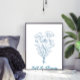This elegant poppy line art print brings classic charm with a modern twist. Featuring five delicate blue poppies in a toile-style design, this minimalist piece is ideal for adding natural grace to living rooms, bedrooms, or offices. Its simple lines and bold elegance create a peaceful focal point for your home gallery . You can personalise text with your own quote