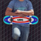 Great British Colour Oval Roundel Rings Design on a Turquoise Background. - - Click 'Personalise this template' above to change or delete "GBR" text. - Perhaps Personalised to your name.