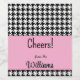Custom Text, Cheers Pink Houndstooth (6) Wine Label