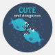 Funny fish стицкер with a cartoon illustration of two piranha friends and the customisable text "Cute and dangerous". Great for a cute girl who is not exactly what she looks like when you judge by her looks.
