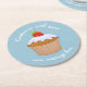 Custom Text Cute Strawberry Bun Blue Round Paper Coaster