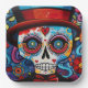 🌟 Embrace the vibrant spirit of Día de Muertos with our captivating paper plate, featuring a colourful sugar skull adorned with a stylish black hat. Against a deep black background, this design is a tribute to this cherished Mexican holiday. 🌟