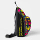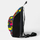 This sling bag features a seamless pickleball pattern inspired by the "Triangular Thrust Pickleball Two-Tone Coffee Mug." A vibrant array of geometric shapes, predominantly triangles, creates a captivating visual that forms the foundation of the design. The energetic grid-like backdrop, composed of bold black borders and bright shades of green and blue, represents the pickleball court and the sky, infusing the pattern with vitality and movement.