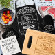 Celebrate dad with this unique custom oven mitt and/or pot holder! Design with the ability to customise all four text areas with your message! Option for buying these as a set or ordering just one. Black background colour and design text in white. Great gift idea for fathers! A matching apron and matching cutting board are also available.