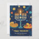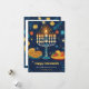 Introducing the “Festival of Lights Celebration Card”! This vibrant Hanukkah greeting card is perfect for spreading joy and warmth during the holiday season. The front design features a beautifully lit menorah with all candles ablaze, symbolising the miraculous eight days of light. Surrounding the menorah are traditional Hanukkah symbols such as dreidels, gold coins known as gelt, and delicious treats like latkes and sufganiyot, all set against a deep blue background adorned with stars and whimsical swirls. The phrase “Happy Hanukkah! Shine bright this holiday season!” is prominently displayed in cheerful lettering, inviting warmth and celebration. Customisable text at the bottom allows for a personal touch from the sender, in this case reading “from [your name] Family,” making it an intimate and thoughtful way to share holiday greetings.