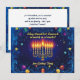 What sets this card apart is the customisable text space on the front and back. Add your own heartfelt message or family name on the front, and use the additional space on the back for a more personalised note. This card is not just a beautiful piece of art but also a unique way to spread joy and warmth during the holiday season. Perfect for anyone looking to add a personal touch to their Hanukkah greetings!