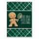 A Gingerbread Grand Slam folded greeting card that combines the festive spirit with the fun of tennis! 🎄 Picture a cheerful gingerbread man, complete with icing details and a cheeky grin, holding a tennis racket. The background is a cosy green plaid, evoking the warmth of the holiday season. The custom text in the middle front adds a personal touch, making it a unique and memorable gift. Perfect for tennis enthusiasts who want to spread some holiday cheer! 🎅🏓
