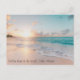Get lost in dreams of summer with this customisable postcard. This card features a gorgeous Hawaiian sunset at a beach with pale seemingly rose gold sand and bright aqua blue water. There is a spot to personalise the postcard at the bottom with your name or text. The default text says Golden hour at the beach, Oahu Hawaii in black cursive script. Hit the Personalise button to enter your own text, or hit the Customise button to change the font, size, or font colour. Makes for a lovely beachy summer scrapbook item, decoration, or gift! Great for lovers of Hawaii, summer, beach, ocean waves, sunsets, and nautical and ocean themed designs.