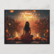 Centred on the postcard, a picturesque scene unfolds, capturing the heartwarming spirit of the festival. A serene shore serves as the backdrop, where the gentle waves of an ethereal water body caress the land. The evening sky is painted with shades of deepening orange and black, evoking a sense of tranquil anticipation as day gives way to night.