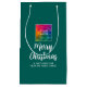 Custom Text Merry Christmas Happy New Year Typography Script Family Name Add Your Business Company Logo Or Image Photo Here Elegant Modern Template Pine Tree Green & White Glossy Small Gift Bag.