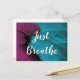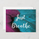Custom Text Just Breathe Dark Pink & Blue Feathers Postcard