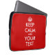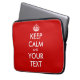 Custom text Keep calm laptop sleeve. Create your own custom parody. Modern typography design with crown. Suitable for 13 and 15 inch computers. Red or custom colour.