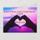 Custom Text Love Hands Heart Shape Pink Sunset Sky Postcard