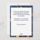 Love the personalization. It is unique in design from commercial products. Looking forward to sending this greeting to my good friends at holiday time. Makes a statement. The design and printing are terrific. The script writing is perfect. Color and quality of paper is a plus. I will be very proud to send this greeting.