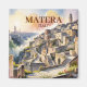 Personalized custom text available. Matera Italy travel art highlights the UNESCO-listed Sassi di Matera cave dwellings carved into limestone cliffs, offering a vintage watercolor impression of Europe’s oldest inhabited city. This travel souvenir captures Basilicata’s historic cave town houses, winding staircases, and narrow alleys, evoking tourist trip nostalgia and urban tourism charm.
