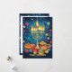 Introducing the “Hanukkah Radiance Card”! This delightful greeting card captures the essence of Hanukkah with its vibrant design. The front showcases a beautifully lit menorah, symbolising the eight days of light, set against a rich navy blue background adorned with stars and festive swirls. Surrounding the menorah are traditional Hanukkah symbols like dreidels, gold coins (gelt), and delicious treats such as latkes and sufganiyot, adding a festive touch. The cheerful greeting “Happy Hanukkah!” is prominently displayed, while the custom text at the bottom reads “Shine bright this holiday season! from [your names] Family,” making it a personalised and heartfelt greeting.