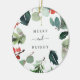 Custom Text Merry and Bright Christmas Greenery Ceramic Ornament