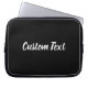 This black laptop sleeve has text in white script. The text can be edited to show your custom message or deleted.