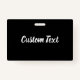 This black badge has display text in a white script. The text can be edited to show a custom message.