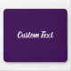 This dark purple mouse pad has text in white script. The text can be edited to show a custom message or deleted