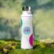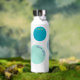 Personalised water bottle with a simple, minimalistic design. The central circle show the initials of the owner, while each bigger circle has a custom message. Ready to customise and perfect as a present!