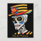 Step into a world of vibrant remembrance with our stunning Día de Muertos postcard. Against a deep black background, a captivating pop art Calavera takes centre stage. This Calavera is adorned with rich hues of red, yellow, and white, infusing the traditional with a modern and energetic twist. A chic hat adds an extra touch of style to this iconic figure.