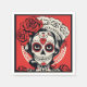This Dia de Muertos-themed napkin showcases a striking pop art rendition of "La Calavera Catrina." Set against a vibrant red background, the iconic figure of La Calavera Catrina is depicted in a captivating black and white style. The contrasting colours of black and white on the bold red backdrop create a visually stunning and attention-grabbing design.