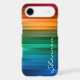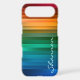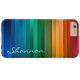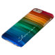 Rainbow multicolor stripe tough iPhone 6 case with custom text. Vibrant and striking rainbow ribbon stripe design featuring an array of the many shades of red, green, blue and yellow. Personalise it with your name or any other text you'd like.