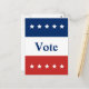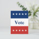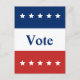 This post card has white stars across a blue field.You can edit the text. It currently says 'vote' in dark blue letters. Customisable text on this red, white and blue vote post card supports your get out the vote and/or voter registration efforts.