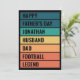 Celebrate Father’s Day with a bold and personalised greeting card designed especially for football-loving dads. This retro-style card features a customisable name and vibrant colour blocks with the words “Husband, Dad, Football Legend,” making it the perfect tribute to the important roles he plays. Ideal for husbands, fathers, stepdads, or father figures who are passionate about football, this unique design blends a vintage aesthetic with a modern message of appreciation. Personalise the text to create a one-of-a-kind card that shows your love and admiration. Whether you're shopping for a sports fan, family man, or both, this customisable Father’s Day card is a meaningful way to celebrate his special day.