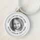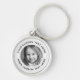 Round keychain with your custom photo and text inside a white border with two light gray lines. Change fonts and colors, move and resize elements with the design tool.