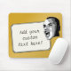 What's on your mind? Add your statement on this custom mouse pad! Digitally altered photo of young man shouting your text on a white rectangular label. Background is gradient gold.