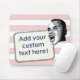 What's on your mind? Add your statement on this custom mouse pad! Digitally altered photo of young man shouting your text on a white rectangular label. Background is pastel red stripes on any colour - you can recolor the space between the stripes by replacing the products basic background colour!