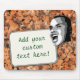 What's on your mind? Add your statement on this custom mouse pad! Digitally altered photo of young man shouting your text on a white rectangular label. Background is photo of orange to brown spotted rock texture.