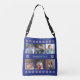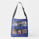 Custom text six photos winter flowers navy crossbody bag