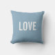 A Valentine (or Christmas or...) themed throw pillow design, by red_dress, featuring the word "LOVE" on a pale blue background.
