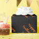 Custom text wrapping paper for Happy Halloween. Cute personalizable name idea for the Holidays. Customisable background colours and note. Black and orange colours.