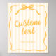 Yellow stripes table sign for a “She Found Her Honey” bridal shower with editable text. Use it for favours, games, or sweets bars. Featuring soft cream and golden hues, delicate stripes, and elegant script typography, this design is perfect for a honey-themed, garden, or classic bridal shower.