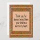A colourful thank you card featuring a pretty pattern and a thoughtful, unique message of gratitude.
