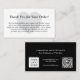 Simply modern black and white business thank you for your order insert card featuring your thank you message on the front of the card with your company logo, business information, and website QR code on the back of the card. Tip: You can customise it further to change the black and white colours to your brand colours.