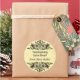 Custom Thanksgiving food, baking or canning stickers with retro letters and beautiful vintage art of a cornucopia, a symbol of a bountiful harvest, with fruits and vegetables on a rustic faux parchment background.